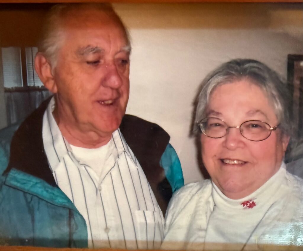 She is survived by her devoted husband of 62 years, Philip; her daughter, Phyllis (Edward) Perkins; and her beloved grandchildren, Robert and Matthew. She now rejoins in heaven her granddaughter, Samantha; her parents, Eva and Fred; twelve siblings; and her faithful dog, Fred.
