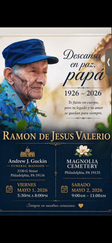 Visitation – Friday, May 1, 2026 (5:30 PM – 8:00 PM) at the Guckin Funeral Mansion – 3330 G Street, Philadelphia, PA 19134
